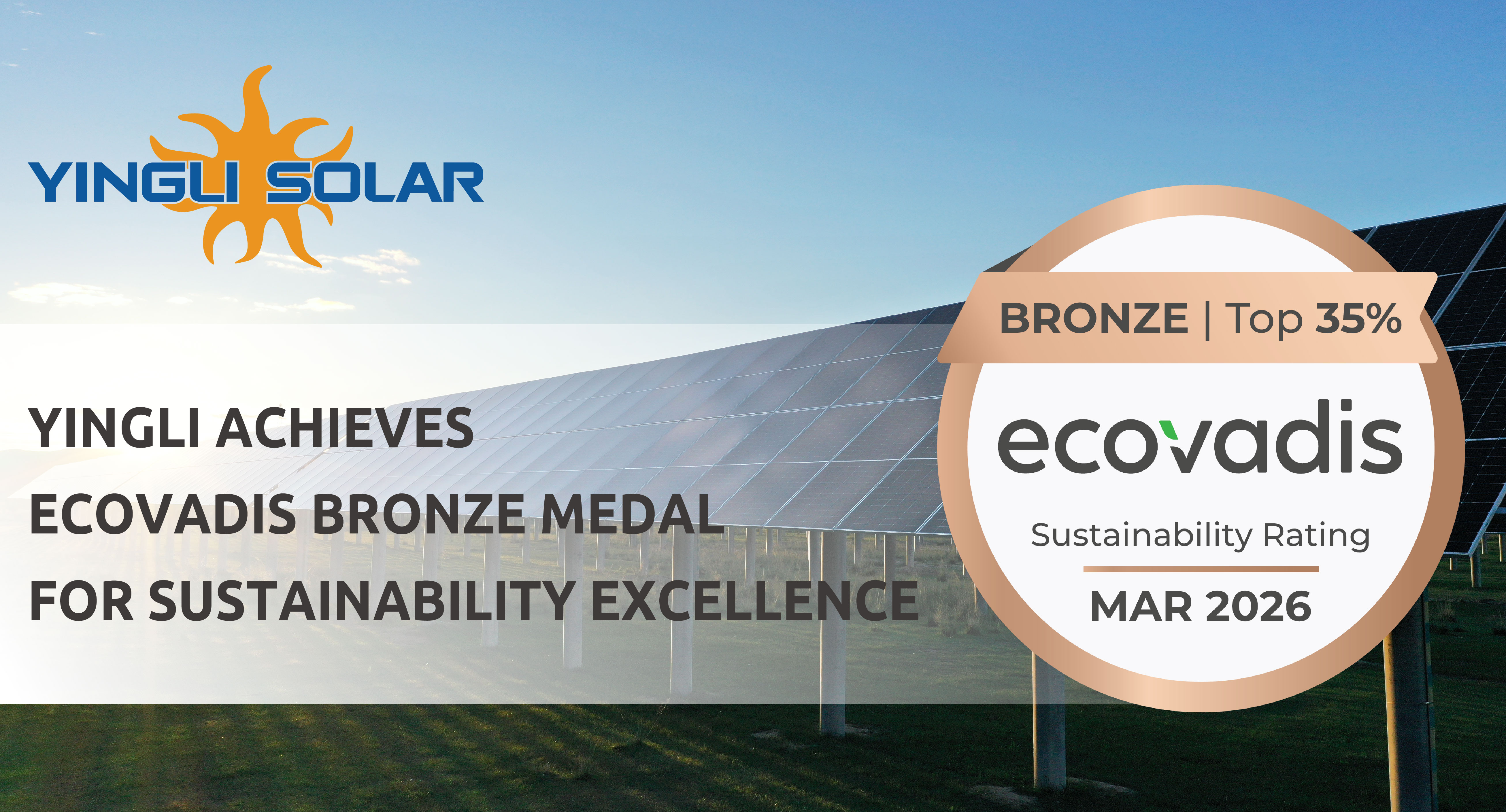 EcoVadis assesses companies based on 21 international standards. Its ratings serve as a key benchmark for companies seeking to enter global supply chains and enhance their sustainability credentials. The Bronze Medal places Yingli among the top 35% of all assessed companies worldwide, validating the effectiveness of its sustainability management system and its contributions to responsible business practices.